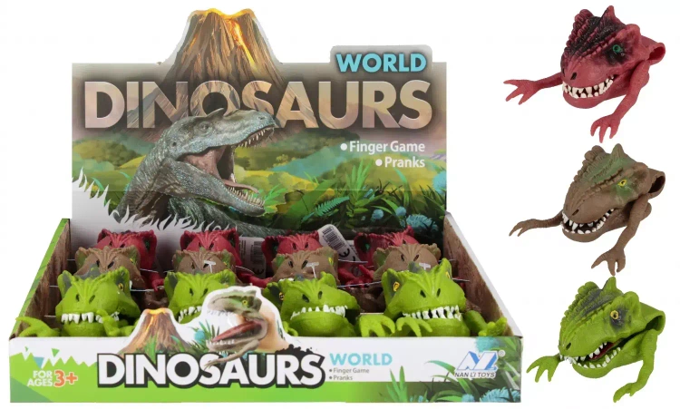 Zalety produktu gumowa nakładka na rękę w kształcie dinozaura w formie marionetki, pacynki, ruszając palcami dinozaur otwiera paszcze w której znajdują się groźne zęby i długi język. Gumowy dinozaur występuje w trzech kolorach. Zawartość zestawu gumowa łapka dinozaur. Zabawka wykonana z gumy. Wymiary/waga/baterie wymiary produktu dł. cm 16 cm, wymiary display dł. x wys. x gł. cm 29x7x28, waga produktu bez opakowania kg 0,05 kg, waga produktu w opakowaniu DISPLAY kg 0,84 kg, nie wymaga zasilania bateriami. Zabawka przeznaczona dla dzieci w wieku 3 . Pakowana w display po 12 szt. W kartonie zbiorczym po 144 szt.
