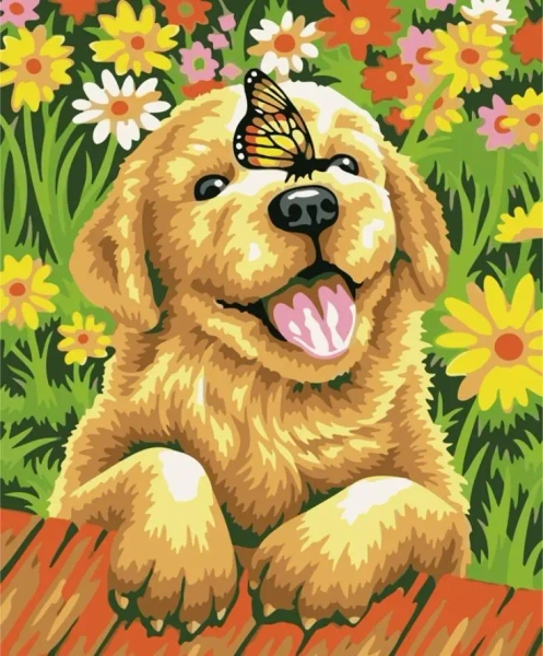Malowanie po numerach 40x50cm Piesek z motylem - Koh-I-Noor