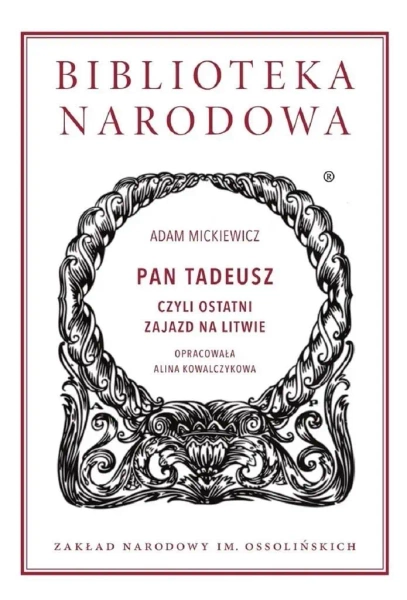 Poetycka wizja Litwy lat 1811 i 1812, spisana przez Adama Mickiewicza dwie dekady później, na emigracji w Paryżu. Opus magnum poety i jego ostatni duży utwór. Przez kolejne pokolenia Polaków uważany za epopeję narodową, Pan Tadeusz (1834) nie przestaje zachwycać. Olśniewa nie tylko kreacją świata, złożonego z obrzędów, obyczajów, rytuałów i konwenansów kultury szlacheckiej, lecz także językiem poetyckim i artyzmem formy. Nie ma w tym poemacie zbędnej frazy, nieznaczącego bohatera, nieistotnej sceny, niewymownego gestu. Wszystko tworzy świat idealny, żywo oddziałujący kolorem, smakiem i dźwiękiem na zmysły czytelnika. Opracowanie Aliny Kowalczykowej, przygotowane dla Biblioteki Narodowej po niemal stu latach od pierwszego wydania Pana Tadeusza ze Wstępem Stanisława Pigonia, adresowane jest do szerokiego grona współczesnych odbiorców, zwłaszcza młodzieży szkolnej. To edycja autorska i nowatorska, która z jednej strony odbrązawia biografię Adama Mickiewicza, a z drugiej sugestywnie prezentuje najważniejsze wątki, idee oraz bohaterów poematu.