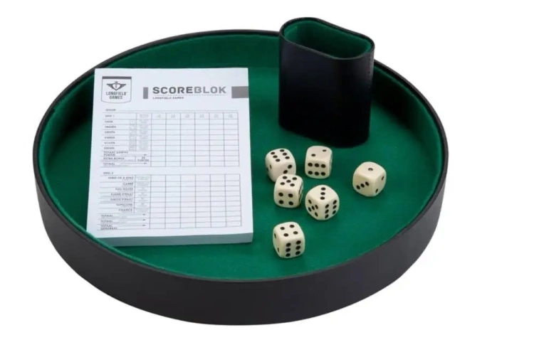 W skład zestawu wchodzi solidna taca, która nie tylko podkreśla prestiż gry, ale także zapewnia wygodne miejsce do rzucania kośćmi. Elegancki kubek, ołówek i notes do zapisywania wyników ułatwiają prowadzenie punktacji, zapewniając porządek i wygodę podczas gry.