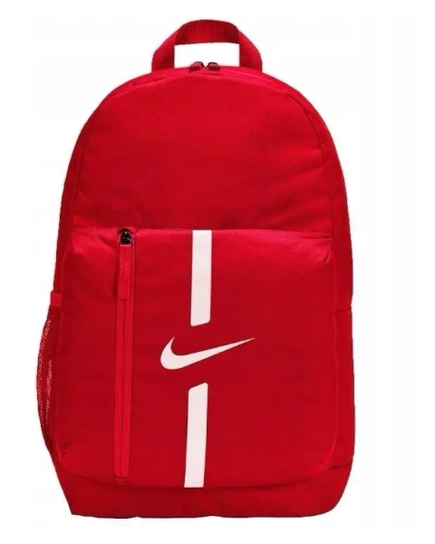 Plecak Nike Academy Team Junior w ładnym czerwonym kolorze to idealny towarzysz młodych sportowców i uczniów. Dzięki przemyślanej konstrukcji sprawdzi się zarówno w szkole, jak i podczas aktywności poza nią. Pojemna komora główna pomieści książki, strój sportowy, a nawet laptop o przekątnej do 15 cali, natomiast dodatkowa, mniejsza kieszeń pozwala łatwo oddzielić drobiazgi od reszty wyposażenia. Boczna kieszeń z siateczki gwarantuje szybki dostęp do butelki z wodą, a duża kieszeń z przodu zmieści akcesoria sportowe. Wyprofilowane, wyściełane szelki i miękka tylna wstawka dbają o komfort noszenia nawet podczas długich dni w ruchu. Dwubiegunowy zamek błyskawiczny ułatwia szybkie otwieranie i zamykanie plecaka.