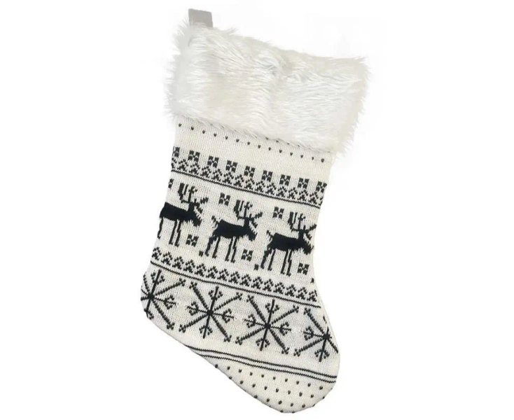 Skarpeta świąteczna biała w renifery 41x22cm - Godan