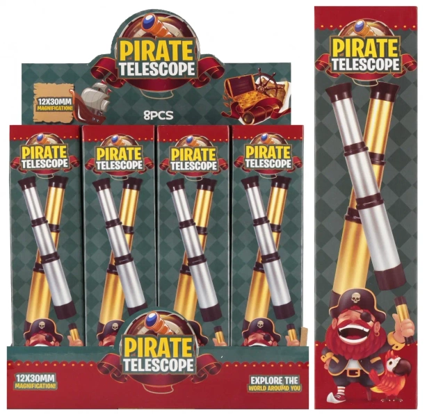 Zalety produktu Zestaw piracki Luneta MEGA CREATIVE to idealna zabawka dla małych odkrywców i przyszłych piratów Dzięki lunecie dzieci mogą obserwować świat z perspektywy kapitana statku i wcielać się w rolę dzielnych poszukiwaczy przygód. To świetny pomysł na prezent dla każdego małego pirata marzącego o morskich przygodach Rozwija wyobraźnię, spostrzegawczość i zdolności obserwacyjne. Idealna do zabawy w domu, ogrodzie lub podczas przygód na świeżym powietrzu. Wykonana z lekkich i bezpiecznych materiałów. Prosta w użyciu wystarczy spojrzeć przez okular, by powiększyć obraz. Zawartość zestawu luneta. Całość wykonana z plastiku. Wymiary/waga wymiary produktu dł. x wys. x gł.. cm 32x4x4, waga produktu kg. 0,07kg, wymiary opakowania szer. x wys. x gł. cm 5x19x4, waga opakowania kg 0,09kg. Wymiary opakowania-display dł. x wys. x gł. cm 20x19x11, waga opakowania-display kg. 0,80kg. Produkt przeznaczony dla dzieci w wieku 3 . Pakowany w kartonik w display po 8szt. Karton 128/256szt.