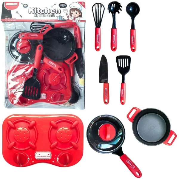 Krótki opis: Rozwiń pasję gotowania w swoim dziecku z zestawem "My Little Chef"! Ten uroczy, czerwony zestaw kuchenny z dwupalnikową kuchenką, garnkami i realistycznymi akcesoriami to idealna zabawka dla każdego małego szefa kuchni, który uwielbia naśladować dorosłych w kuchni.