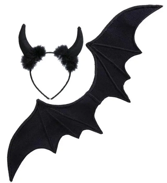 Czarne skrzydła upadłego anioła, przypominające kształtem nietoperza, które dodadzą Twojej stylizacji niepowtarzalnego charakteru. Wykonane z lekkiego, lecz wytrzymałego materiału, mocowane na elastycznej gumce, zapewniają wygodę noszenia i łatwe dopasowanie.