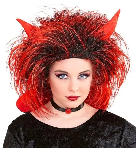Peruka diablicy czarno czerwona z rogami - Widmann