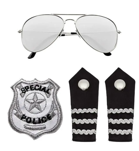 Zestaw policjanta dla dorosłych to propozycja dla tych, którzy lubią przyciągać spojrzenia i wcielać się w role z charakterem. Idealny na bale przebierańców, wieczory tematyczne, imprezy firmowe, wieczory kawalerskie czy szalone domówki. W komplecie znajdziesz wszystko, czego potrzebuje prawdziwy funkcjonariusz: Metalowe okulary pilotki z dymionymi szkłami i srebrną oprawką - nadają pewności siebie. Pagony - symbol służbowego prestiżu, który od razu zdradzi Twój "policyjny stopień". Materiałowa naszywka odznaka "Special Police" - prawdziwy znak rozpoznawczy, który sprawi, że nikt nie przejdzie obok obojętnie. Dzięki temu zestawowi poczujesz się jak bohater filmu akcji, gotowy do "utrzymania porządku" na parkiecie. Sprawdzi się zarówno w roli poważnego mundurowego, jak i w zabawnej, przerysowanej wersji rodem z amerykańskich komedii.