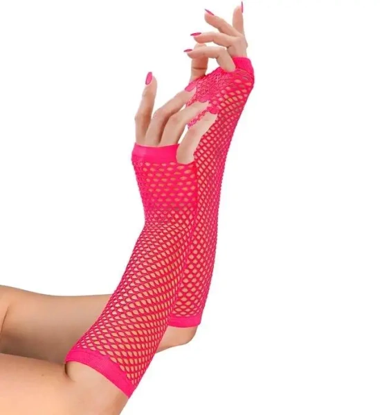 Długie rękawiczki bezpalcowe różowe neon - Widmann