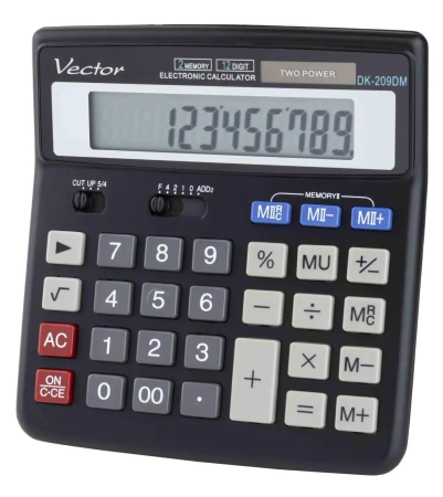 • 12 pozycyjny • Podwójne zasilanie • Podwójna pamięć • Obliczanie marży • Zaokrąglanie wyników • Klawisz zmiany znaku +/-