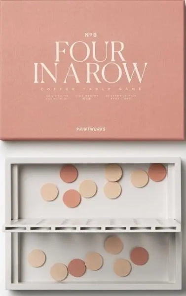 Klasyczna gra Four in a Row (Cztery w rzędzie) wydana przez PRINTWORKS w pięknej kolorystyce i minimalistycznej estetyce. Przywołaj dziecięce wspomnienia i ciesz się grą.