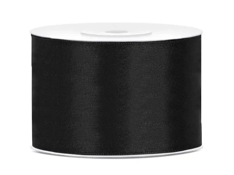 Tasiemka satynowa w kolorze czarnym, szerokość 50 milimetrów, długość 25 metrów.