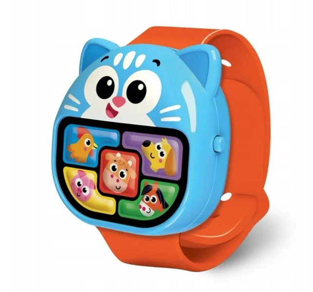 Niebieski kociak to pierwszy zegarek maluszka, który zamiast godzin, nauczy powitań dostosowanych do określonej pory dnia! Dodatkowo, zabawka wypowiada wesołe zwroty oraz odtwarza pięć piosenek w języku polskim, a za uruchamianie dźwięków odpowiadają kolorowe przyciski z obrazkami zwierzątek. Kociak posiada praktyczny wyłącznik oraz regulowany pasek, umożliwiający dopasowanie go do rączki dziecka.
