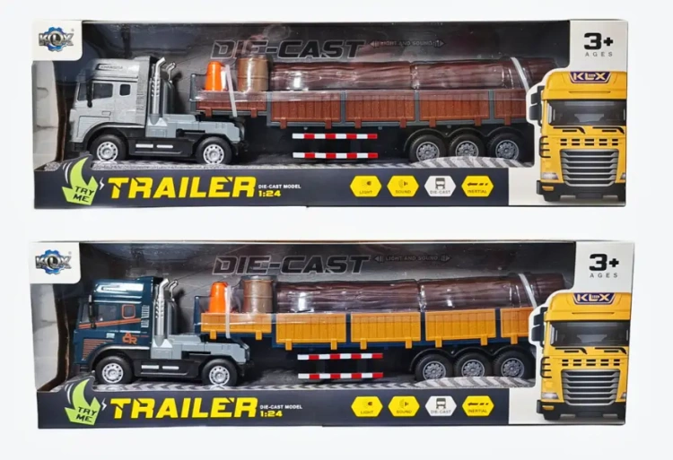 Pojazd ciężarówka ze światłem i dźwiękiem z przyczepą z drewnem i akcesoriami - SWEDE