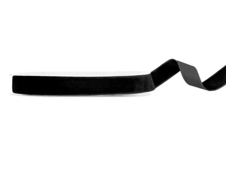 Tasiemka welurowa w kolorze czarnym, szerokość 15 milimetrów, długość 10 metrów.