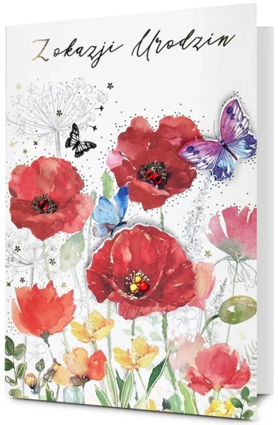 Kartka jest bogato i różnorodnie zdobiona (zależnie od wzoru: metaliczna folia, lakier perłowy,