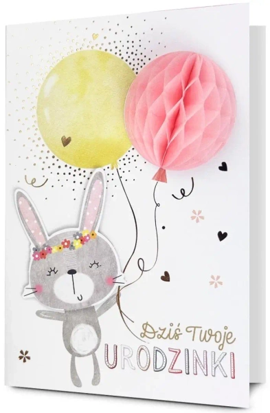Kartka zawiera życzenia i kolorowy środek.