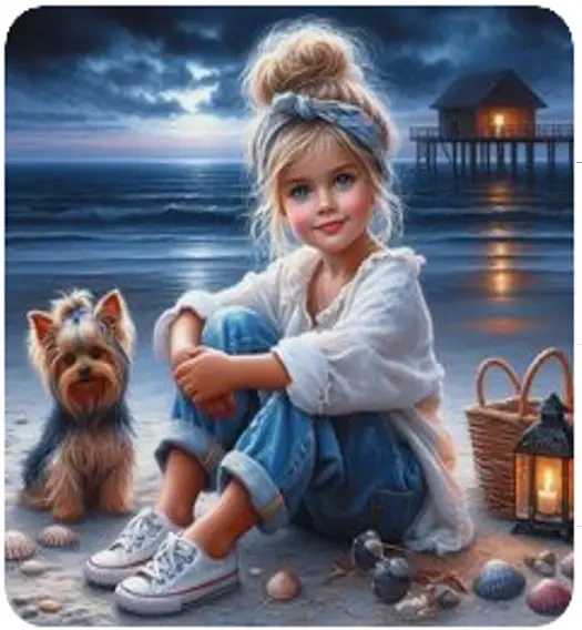 Diamentowa Mozaika Dziewczynka z pieskiem na wybrzeżu NO-2001529 - Norimpex