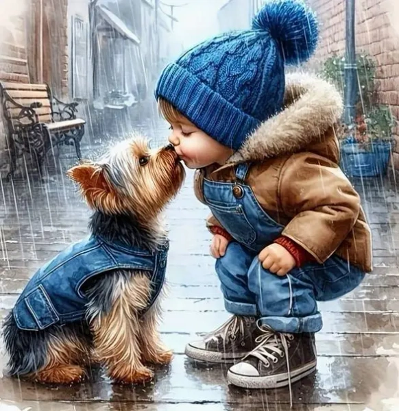 Diamentowa Mozaika Chłopiec i pies buziak w deszczu NO-2001527 - Norimpex