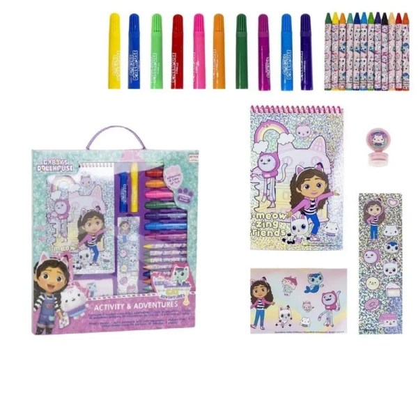 Kolorowy zestaw kreatywny Koci Domek Gabi to wspaniała propozycja dla małych fanek uroczych kotków i ich przygód! Składający się z 26 elementów zestaw został spakowany w ładne, prezentowe opakowanie, które sprawia, że zestaw jest gotowy do wręczenia jako wyjątkowy prezent, a jednocześnie idealny do zabrania do szkoły czy przedszkola.