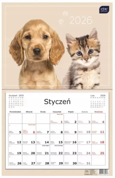 Kalendarz 2026 jednodzielny 32x50cm Zwierzaki - INTERDRUK