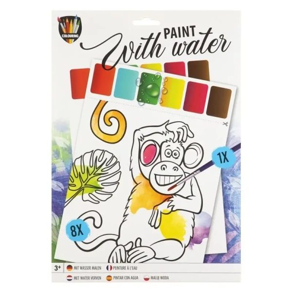 Kolorowe farbki znajdują się na arkuszach papieru. Wystarczy, że zwilżysz pędzelek w wodzie i zamoczysz kwadracik z wybranym przez siebie kolorem. Ta wyjątkowa i praktyczna cecha malowanki pozwoli Ci malować w każdych warunkach, niezależnie czy jesteś w domu czy w podróży.