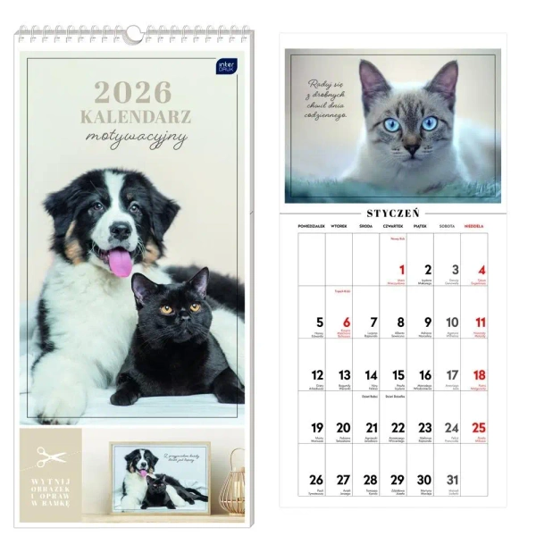 Kalendarz 2026 motywacyjny 22x46cm Zwierzaki - INTERDRUK