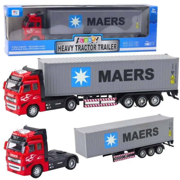 Pojazd posiada napęd typu pull-back, dzięki czemu wystarczy odciągnąć go do tyłu, by ruszył do przodu z prędkością, dając dziecku jeszcze więcej frajdy. Detale takie jak nadrukowane oznaczenia, kabina kierowcy z realistycznymi detalami oraz duży odczepiany kontener sprawiają, że zabawka wiernie odwzorowuje prawdziwy pojazd transportowy.