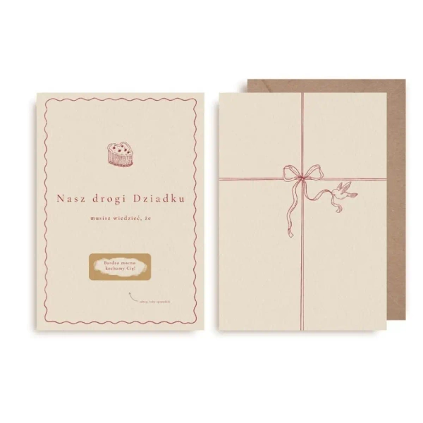 Kartka dwustronnie zadrukowana, w komplecie z kopertą w stylu kraft