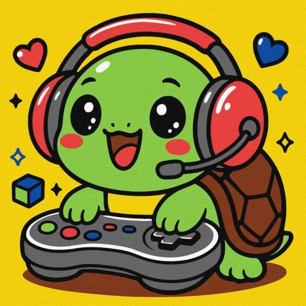 Malowanie po numerach - Żółwik gracz 25x25cm - Ideyka