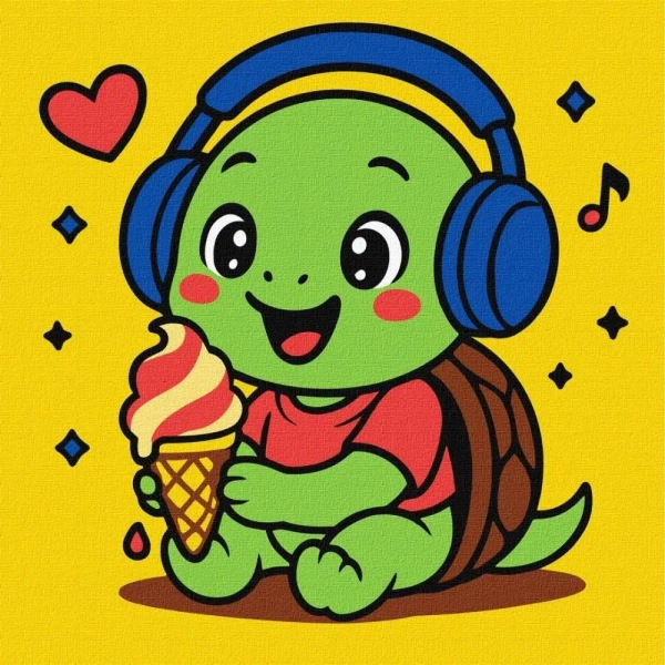 Malowanie po numerach - Żółwik je lody 25x25cm - Ideyka