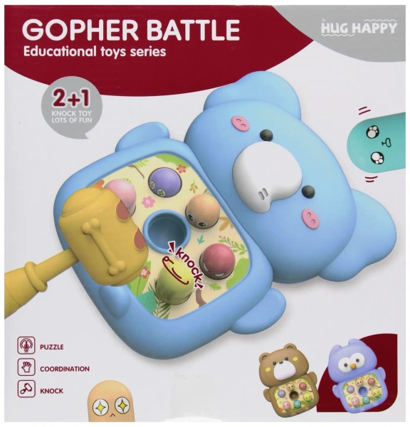 Zabawka polega na uderzaniu młotkiem wystającej kulki która po wbiciu wypycha kolejną w innym miejscu a gracz musi jak najszybciej wbić tą kolejną. Zawartość zestawu: zabawka Miś, młotek do przebijania.