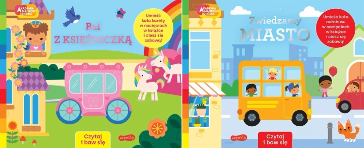 Zwiedzamy miasto to filcowo-kartonowa książeczka w nowej serii Akademii Mądrego Dziecka Czytaj i baw się. Książeczka opowiada o tym jak wygląda życie w mieście. Zwiedzamy je razem z autobusem, który dołączony jest do książeczki na tasiemce. Autobus musimy wyciągnąć z okładki i postawić w odpowiednich nacięciach na środku pierwszej strony. Dzięki wycięciu w stronach autobus jedzie z nami przez kolejne strony książeczki. Razem z nim jedziemy ulicą miasta mijając domy, dzieci, i inne samochody. Mijamy park w którym dzieci bawią się na zjeżdżalni oraz przejeżdżamy przez tunel. Na każdej stronie mały czytelnik ma krótkie pytanie wymagające pokazania lub policzenia. Książeczka zachęca do wspólnej zabawy, duże, lekkie strony są idealne dla małych rączek do oglądania i przekładania, a stojący pojazd umili zabawę i wspólne czytanie.