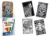 Zestaw 4 kolorowanek welwetowych, każda o wymiarze 18x12 cm, z 12 flamastrami Carioca w zestawie - idealny towarzysz podróży.