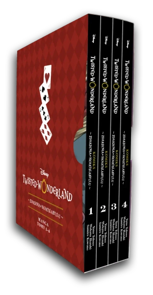 Pakiet z 4 tomami mangi czytanej od prawej do lewej o niezwykłych przygodach nastolatka w magicznym świecie o nazwie Twisted Wonderland. Komiksowa wersja niezmiernie popularnej gry mobilnej "Disney Twisted-Wonderland", stworzona przez ludzi, którzy przygotowali tę grę. Licealista Yu zostaje przyjęty do przedziwnej szkoły magii - Night Raven College i mianowany przewodniczącym jednego z dormitoriów. Poznaje nowych kolegów i mierzy się z wieloma zaskakującymi wyzwaniami.