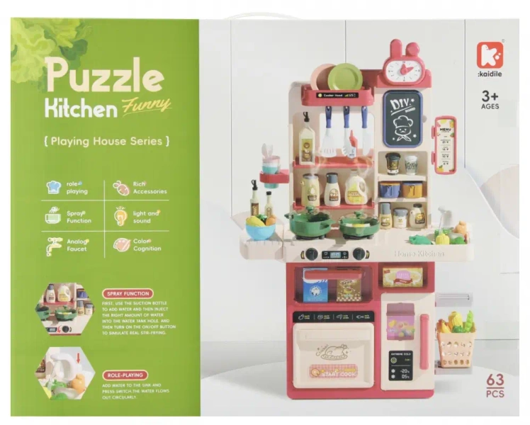 Produkt wykonany z plastiku, wszystkie produkty są imitacją prawdziwych Zawartość zestawu kuchnia, art spożywczo-przemysłowe, akcesoria kuchenne.