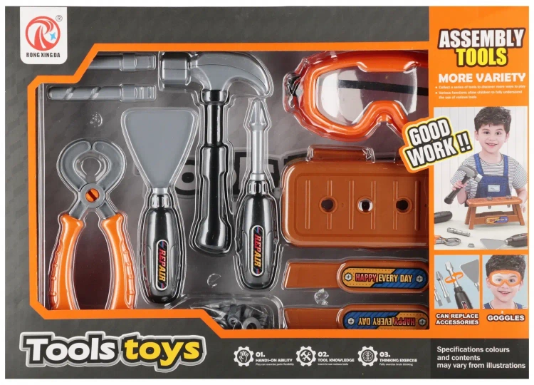 Zalety produktu Zestaw narzędzi MEGA CREATIVE to idealna zabawka dla małych majsterkowiczów Dzieci mogą odgrywać rolę prawdziwego konstruktora, rozwijając zdolności manualne, kreatywność i wyobraźnię podczas bezpiecznej zabawy. Bogaty zestaw akcesoriów np. młotek, śrubokręt, klucze, wkręty i inne narzędzia w dziecięcym rozmiarze. Bezpieczne materiały, wykonane z lekkiego, nietoksycznego plastiku. Rozwój zdolności manualnych i kreatywności, ćwiczy precyzję, koordynację ręka-oko oraz logiczne myślenie. Zabawa indywidualna i grupowa, idealny do zabaw w domu, przedszkolu lub na przyjęciach tematycznych. Zestaw narzędzi to doskonały pomysł na prezent dla dzieci od 3 roku życia, zapewniający godziny bezpiecznej, twórczej i edukacyjnej zabawy. Produkt wykonany z plastiku i gumy. Zawartość zestawu kombinerki, szpachelka, młotek, śrubokręt, okulary ochronne, deseczki, śrubki i nakładki na śrubki. Wymiary/ waga/ baterie Wymiary produktu dł. x wys. x gł. cm -okulary ochronne 14x6x5, waga produktu kg. 0,27 kg , wymiary opakowania dł. x wys. x gł. cm 39x28x6, waga opakowania kg. 0,43 kg. Nie wymaga zasilania bateriami. Przeznaczony dla dzieci w wieku 3 . Pakowany w kartonik z okienkiem. W kartonie po 18/36 szt.