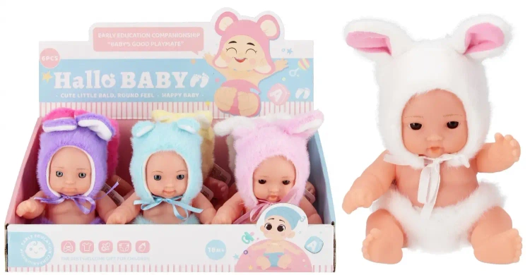 Zalety produktu Lalka Bobas o wysokości 20 cm to urocza zabawka, która pozwala dzieciom wcielać się w rolę opiekunów i rozwijać wyobraźnię oraz empatię. Dzięki różnorodnym kolorom i realistycznym detalom zabawa staje się jeszcze bardziej wciągająca. Lalka Bobas 20 cm to świetny pomysł na prezent dla dzieci od 18 miesiąca życia, który łączy zabawę z nauką troski i kreatywności. Bezpieczne materiały, wykonana z nietoksycznego plastiku i tkanin, odpowiednia dla dzieci. Rozwój kreatywności i empatii, wspiera zabawę w opiekę, odgrywanie ról i naukę odpowiedzialności. Rozmiar 20 cm, idealna do trzymania w rączkach dzieci i zabawy w domu. Różne wersje ubranek i wyglądu, które dzieci mogą kolekcjonować. Występuje w sześciu kolorach. Uwaga produkt wysyłany losowo Produkt wykonany z gumy i pluszu. Zawartość zestawu lalka bobas. Wymiary produktu cm 20cm, waga produktu kg. 0,15 kg , wymiary opakowania dł. x wys. x gł. cm 35x14x20, waga opakowania kg. 1,02 kg. Nie wymaga zasilania bateriami. Przeznaczony dla dzieci w wieku 18M . Pakowany w display po 6 szt. Karton zbiorczy po 144 szt.