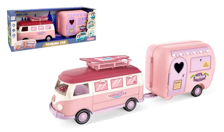 Akcesoria dla lalki auto typu VAN ze światłami i przyczepą kempingową - SWEDE