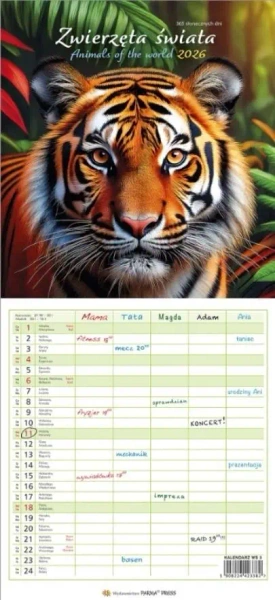 Kalendarz 2026 wieloplanszowy wąski - Zwierzęta - Parma Press