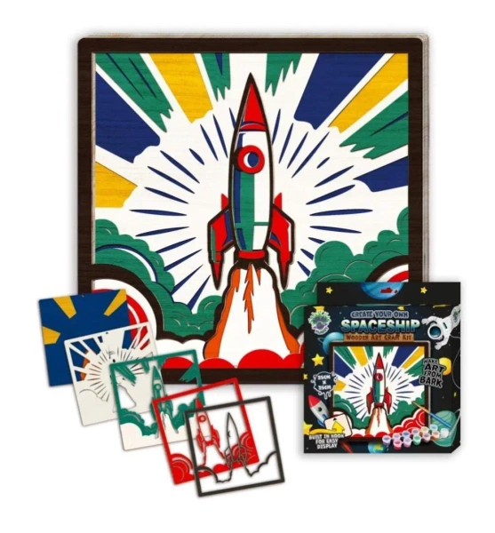 Zestawy do tworzenia obrazów z drewna są łatwe w wykonaniu i umożliwiają stworzenie trójwymiarowych prac, które można zawiesić na ścianie. Standardowy rozmiar to 25 cm x 25 cm. Zestaw zawiera 2 pędzle, farby, 5 drewnianych warstw oraz klej.