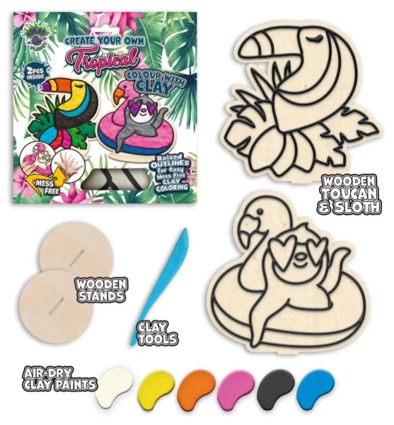 Zestaw do kolorowania plasteliną na drewnie Tropik - Splat Planet
