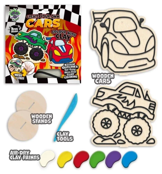 Zestaw do kolorowania plasteliną na drewnie Auta - Splat Planet