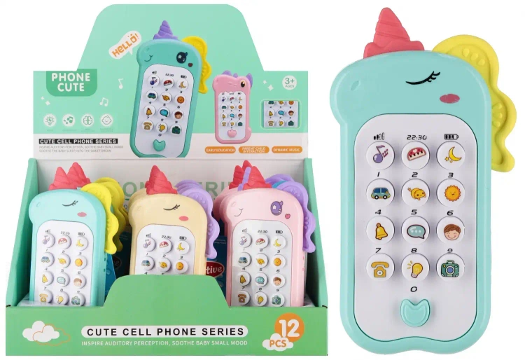 Zalety produktu Telefon na baterie Jednorożec MEGA CREATIVE mix kolor oacute w. Uroczy telefon w kształcie jednorożca to zabawka, kt oacute ra zachwyci każdego malucha Dzięki efektom dźwiękowym i świetlnym telefon przypomina prawdziwe urządzenie, a kolorowa obudowa w bajkowym stylu zachęca do zabawy i naśladowania dorosłych. Świetny pomysł na prezent dla dzieci, kt oacute re kochają jednorożce i interaktywne zabawki. Mix kolor oacute w, dostępne trzy wersje kolorystyczne. Uwaga wysyłka losowa Rozw oacute j wyobraźni, wspiera kreatywne odgrywanie r oacute l i zabawę w dom. Efekty dźwiękowe i świetlne, po włączeniu telefon wydaje realistyczne dźwięki, melodie i świeci. Produkt wykonany z plastiku i gumy. Zawartość zestawu telefon jednorożec. Wymiary/waga/baterie wymiary produktu cm 8x15x2cm, wymiary opakowania display dł. x wys. x gł. cm 26x15x17, waga produktu bez opakowania kg 0,07kg, waga produktu w opakowaniu kg 1,00kg, wymaga zasilania bateriami 2x AAALR03-nie załączonymi do zestawu. Zestaw przeznaczony dla dzieci w wieku 3 . Pakowany w display po 12 szt. W kartonie zbiorczym po 288szt.
