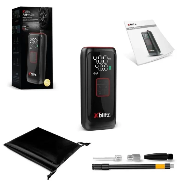 Xblitz Airmaster to kompaktowa, bezprzewodowa pompka elektryczna z funkcją powerbanku, która sprawdzi się w każdej sytuacji - od pompowania opon po materace plażowe. Dzięki szybkiemu działaniu, automatycznemu wyłączaniu, wbudowanej latarce LED i czytelnemu manometrowi LED, zapewnia wygodę i bezpieczeństwo użytkowania o każdej porze. Wszechstronność zapewniają cztery wymienne końcówki oraz możliwość ładowania przez USB-C - to niezastąpione urządzenie w podróży, w garażu i na wakacjach.