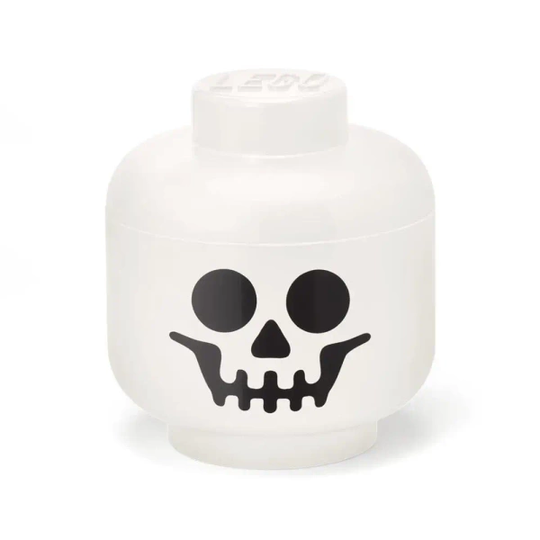 Pojemnik w kształcie główki Lego w rozmiarze large z minką Skeleton, kolekcja Halloween. Pojemność 8,5 l.