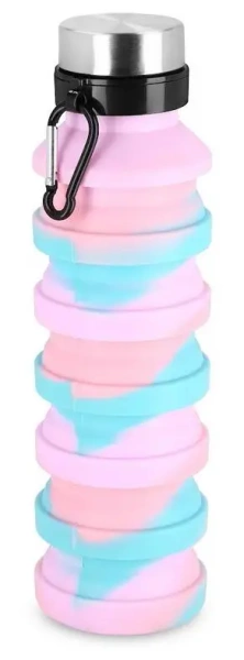 Składany bidon wykonany z silikonu, który nie pochłania zapachów i cechuje się dużą elastycznością. Bidon wyposażony jest w karabińczyk, ułatwiający przenoszenie produktu. Jest lekki, a po złożeniu zajmuje niezwykle mało miejsce i można przypiąć do torby lub plecaka.