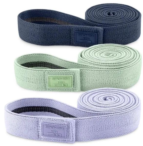 Zestaw trzech gum o różnym stopniu oporu, to uniwersalne narzędzie fitness do treningu domowego, na siłowni, pilatesu, jogi czy stretchingu. Zapewnia nieograniczoną ilość odmian ćwiczeń oraz treningów dla wzmacniania i tonizowania ciała. Wykonany z wysokiej jakości poliestru i bawełny zapewni komfort podczas ćwiczeń. Zakresy oporu: 1-7 kg, 7-12 kg, 12-17 kg.