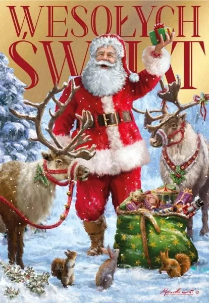 Kartka wielkości B6, zdobiona metaliczną folią. Każda kartka posiada kolorowe życzenia w środku i dopasowaną kopertę w komplecie.