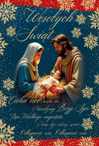 Kartka wielkości B6, zdobiona metaliczną folią. Każda kartka posiada kolorowe życzenia w środku i dopasowaną kopertę w komplecie.