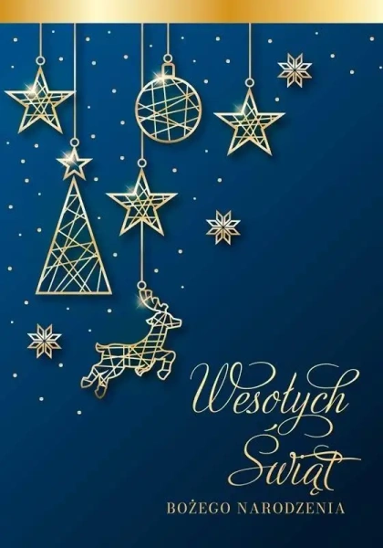 Kartka wielkości B6, zdobiona metaliczną folią. Każda kartka posiada kolorowe życzenia w środku i dopasowaną kopertę w komplecie.